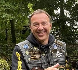 Rides a Harley Davidson Trike.